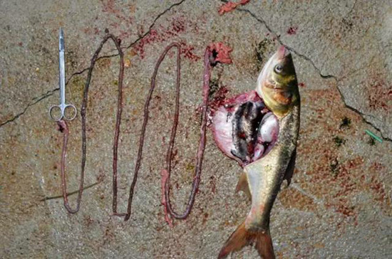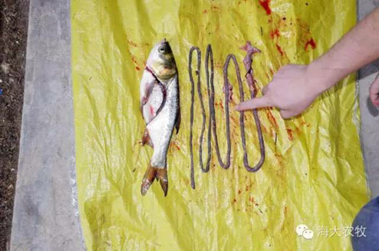 自然條件下的大頭魚腸道(約體長的5.5倍)