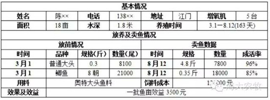 據項目的負責人馬文豐經理介紹,該模式的前期推廣市場主要在廣西、江門、肇慶及佛山部分區域。因為這些區域的塘租相對珠三角便宜,塘租在1000多元。且不少魚塘上面有豬、鴨立體養殖,在立體養殖情況下,每斤大頭魚的飼料成本比無立體養殖的魚塘低0.3—0.5元。該模式在這些區域的養殖成本更低。效益可觀。
