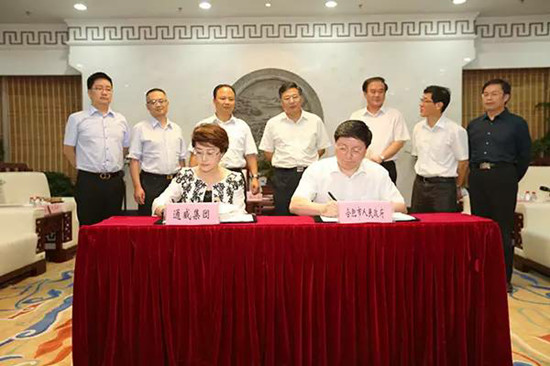 2015年9月8日下午,合肥市人民政府與通威集團戰略合作框架協議簽約儀式在合肥市政務中心隆重舉行。簽約儀式由合肥高新區工委書記、管委會主任李兵主持,安徽省委常委、合肥市委書記吳存榮,合肥市委常委、常務副市長韓冰,合肥市副市長王翔,十一屆全國政協常委、通威集團董事局劉漢元主席,集團禚玉嬌總裁,集團副總裁胡榮柱,集團總裁助理、通威太陽能(合肥)有限公司董事長謝毅等領導共同出席。