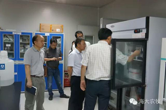 9月15日,廣東省科技廳副廳長劉偉,廣東省科技廳產學研結合處處長李彪,副處長張志彤、李政訪等領導蒞臨海大研究院參觀指導。劉偉副廳長一行通過實地調研了解當今企業在科技創新等方面遇到的實際困難,并對日前通過廣東省新型研發機構認定的廣東海大畜牧獸醫研究院有限公司進行現場考察。