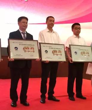 獐子島錦通與獐子島錦達總經理江波(中)出席大會并接受牌匾