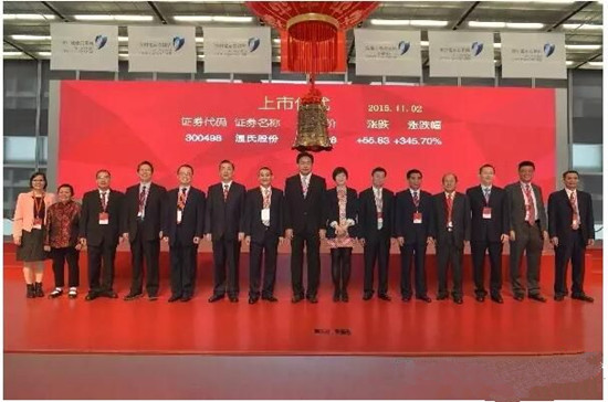 30年后的2015年11月2日,溫氏股份正式登陸創業板,總市值超過2000億,迅速成為創業板市值“巨無霸”。第二天溫氏股票又是一個漲停,市值又是增加了200億,按照這個速度,就是3天增長兩個大北農的市值。溫鵬程、嚴居然等45名自然人擁有該集團約49.677%權益。他們持股比例在0.048%-3.287%間,其中 43位股東預計將擁有1.7億-17.1億元的個人財富。