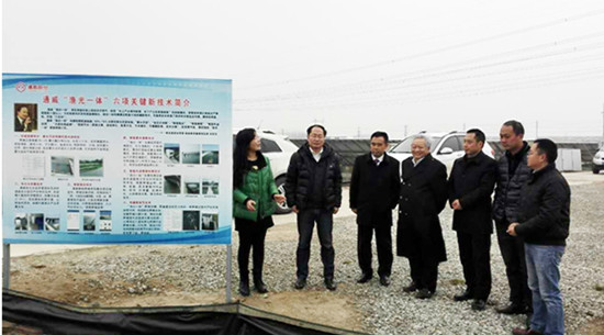 2月28日,通威股份嚴虎嚴總赴江蘇射陽縣通威“漁光一體”示范基地——陳紅“漁光一體”池塘檢查指導工作,并考察了當地的光伏電站。通威股份副總裁兼華東片區總裁王尚文,國務院特殊津貼專家、通威首席水產專家、設施漁業工程研究所名譽所長吳宗文,通威淮安飼料有限公司總經理丁永國,設施漁業工程研究所工程師謝偉等陪同。