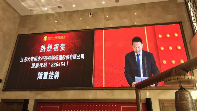 2016年4月28日江蘇大有恒水產供應鏈管理股份有限公司掛牌上市敲鐘儀式,在全國中小企業股份轉讓系統中心隆重舉行。