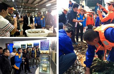 在大連,考察團一行參觀了金貝廣場、新中海產、獐子島專賣店和專柜,并前往獐子島考察了海洋牧場、貝類加工中心等,了解獐子島育苗、加工、增養殖等生產情況。通過實地調研,考察團對獐子島集團的生產模式與企業實力給予了高度評價。