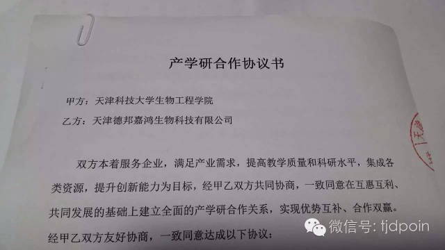 天津德邦嘉鴻生物科技有限公司成為天津科技大學產學研基地,為了充分發揮高校人才培養、科學研究和服務社會的功能,利用高等院校的技術、人力等資源以及先進成熟的技術成果,利用我公司先進的生產條件,將天津科技大學科研成果盡快地轉化為生產力,不斷提升我公司的技術和管理水平。雙方發揮各自優勢,通過多種形式開展全面合作,共同構建產學研聯盟的創新體系。建立產學研長期合作關系,共同推進企業與學校的全面技術合作,形成專業、產業相互促進、共同發展,努力實現“校企合作、產學雙贏”。公司總經理黃兵先生與天津科技大學生物工程學院王敏院長(教授/博士山導師)出席了簽約儀式。