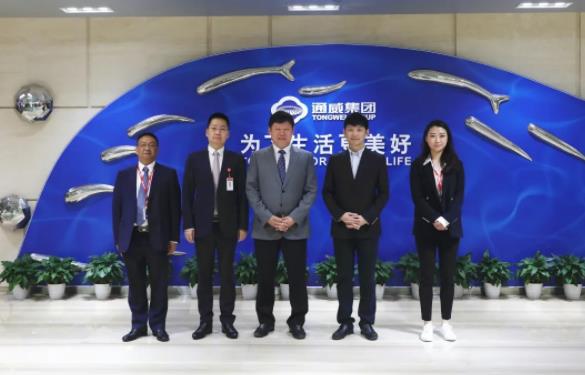 馮董事長一行先后參觀了通威太陽能A1展廳、智能制造生產車間和集團體驗中心,詳細了解了通威39年來“發端于水產,成長于農牧,跨越于新能源”的創業歷程,對通威綠色生態發展理念、綠色農業與綠色能源高效協同發展、智能化生產水平,以及多年來穩健發展取得的成績給予高度評價。