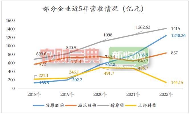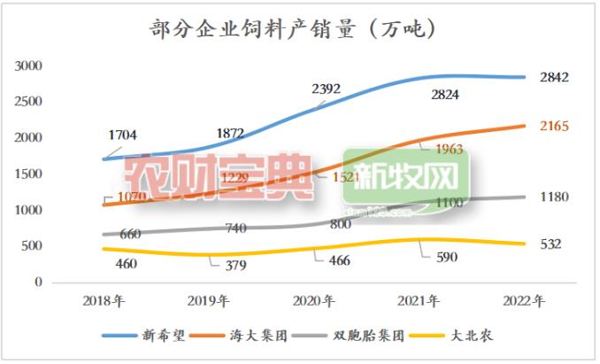 飼料業務是新希望最核心的支柱之一。2022年,新希望飼料內外銷飼料合計達2842萬噸,約占全國總量的9.4%,穩居全國第一。