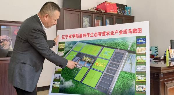 任成宇介紹公司的稻漁共作生態智慧農業產業園
