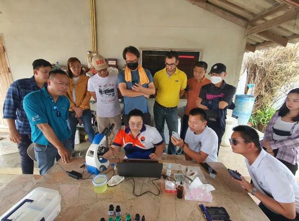 在中國,我們還會吸取在泰國養殖蝦時的經驗,將用顯微鏡觀測蝦情況的技術交給經銷商,培訓他們如何抽樣、如何觀測蝦的胰腺和腸道等部位,讓養殖戶能夠快速了解自己的蝦的情況,一旦出現病害,可以第一時間采取措施,進行防治,避免重大損失的出現。