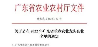 據公開信息,經各地申報推薦、第三方評審、實地抽查復核、征求省有關單位意見,并報省政府審定,根據《廣東省重點農業龍頭企業認定和運行監測辦法》規定,廣東粵海飼料集團股份有限公司(股票代碼001313,以下簡稱“粵海飼料”)被認定為2022年廣東省重點農業龍頭企業。