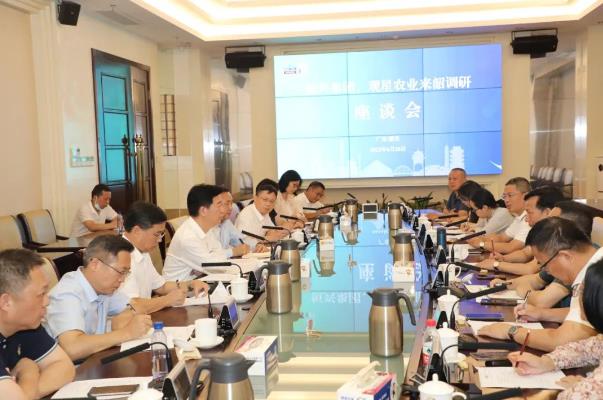 26日,韶關市市委書記陳少榮、市長陳志清與廣東恒興集團有限公司董事長陳丹、廣州觀星農業科技有限公司董事長舒銳一行進行座談交流。