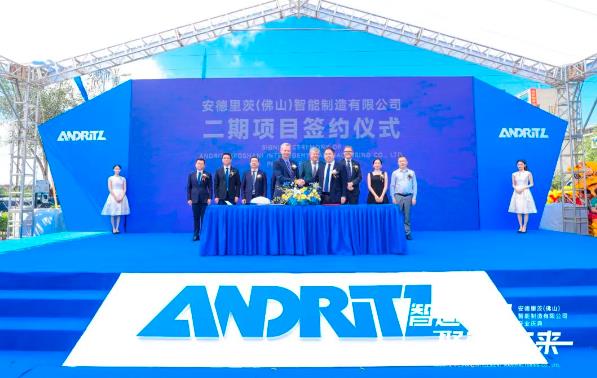 佛山市南海區九江鎮黨委副書記、鎮長羅淮東與安德里茨(中國)有限公司總裁托馬斯·施密茨就安德里茨(佛山)智能制造有限公司二期項目簽約。佛山市政府領導以及安德里茨集團成員見證。