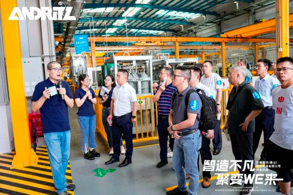 活動現場,嘉賓在工作人員引導下參觀安德里茨(佛山)智能制造有限公司。