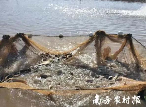 大刺鰍商品魚收獲。