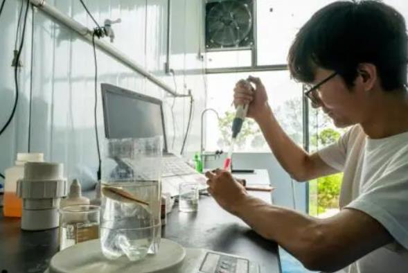 (李亞武正在做養殖水體水質檢測)