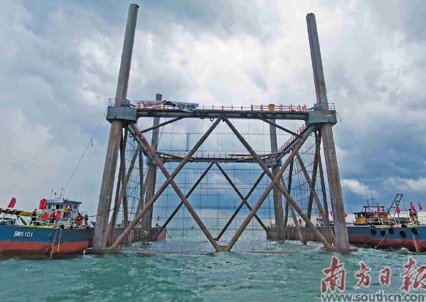 廣東制造的自升式桁架類網箱在湛江下水投產
