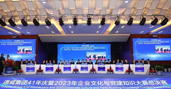 企業文化與黨建知識大賽總決賽分為必答題、搶答題、風險題三個環節,競賽題目涵蓋通威企業文化、黨建知識、管理文化、發展歷程、農業與新能源產業,以及全球光伏行業發展情況等,全方位考驗參賽選手的知識功底。通威農發、永祥股份、通威太陽能(電池)、通威太陽能(組件)、通威新能源、通威食品、集團相關多元板塊共7支參賽隊伍以飽滿的精神風貌參與比賽。