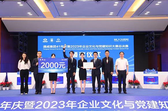 當天活動,四川省經濟和信息化廳總經濟師袁冰、材料工業處副處長卿家勝、企業處副處長鄧軍、企業處二級調研員張代軍,四川廣播電視學會播音主持專委會特邀理事、四川電視藝術家協會播音主持專委會副主任、成都市語言藝術家協會副會長海光,四川電視臺著名主持人靳濤、程玥、田川、王楚涵,四川省社會主義學院馬克思主義理論和統戰理論教研部講師周洋洋,全國人大代表、全國工商聯副主席、通威集團董事局劉漢元主席,通威集團禚玉嬌總裁,通威股份董事長、CEO劉舒琪,副董事長嚴虎,農牧總裁、通威農發總經理郭異忠,集團副總裁胡榮柱,集團黨委書記、副總裁、集團企業文化建設專項工作小組執行組長黃其剛,集團財務總監肖吉華等領導嘉賓出席。集團、股份管理總部,集團各板塊管理團隊及員工代表共500余人參會,全球各分、子公司的通威人線上視頻同步觀看精彩比賽。