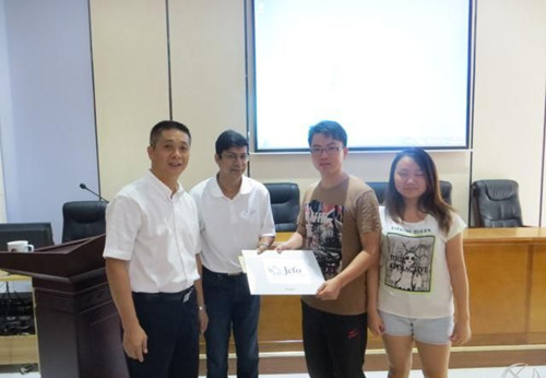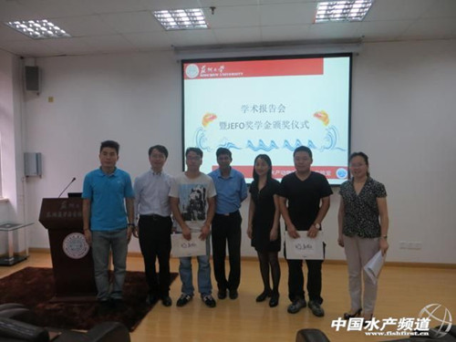 加拿大Jefo動物營養公司為了鼓勵在水產養殖相關領域學術研究突出的同學,特在上海海洋大學,廣東海洋大學和蘇州大學的水產相關專業設立Jefo獎學金,在新學年伊始,來自加拿大的Kabir博士和上海紐崔特的水產技術人員分別前往三所高校舉辦了獎學金的頒發儀式,三所院校的院領導和各學科帶頭人等對Jefo獎學金都表示贊揚,并且鼓勵學生們要專研學術,實現自身價值;獲獎學生表達了對Jefo的感謝之情,在未來會更加努力,為中國的水產養殖做出貢獻。