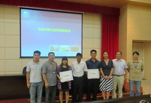 獎學金頒發儀式之后,加拿大的Kabir博士做了“未來水產動物飼料行業面臨的挑戰”專題報告。報告介紹了全球飼料行業的發展,飼料原料問題,產學研的結合和未來水產動物營養的研究方向,在場聆聽的學生和老師對報告評價很高,其中帶來了很多新觀點和新思路,十分值得行業和學術的關注。