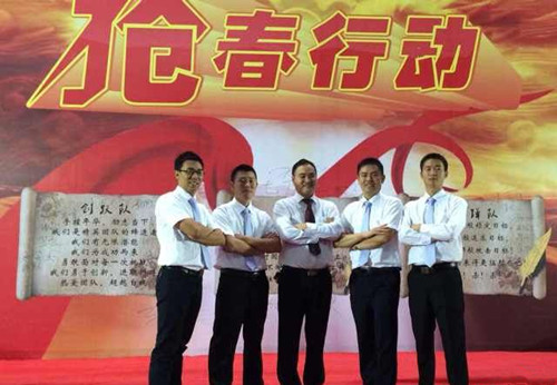 海壹淡水營銷公司2015年“搶春行動”誓師動員大會在今早9點拉開了帷幕。在充滿激情和斗志昂揚的音樂聲中,兄弟們個個精神抖擻。雖然歷經11月3~7日5天的封閉式特訓后,他們聲音帶著嘶啞卻仍然能吼出徹響整個廠區的震撼聲,此時的我只感覺身體里躺著的每一滴血都在為之沸騰,激動的心久久不能平靜下來。正因為你們的一腔熱情,感動與鼓舞著身邊的每一個人。兄弟姐妹們,加油,有你、有我、有他,海壹淡水公司在鄧總的帶領下2015年一定會沖向更高點!