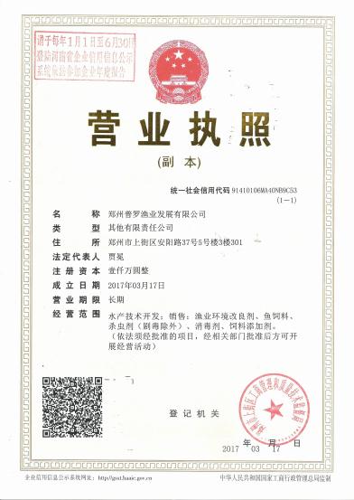 CCTV7科技興農戰略合作企業,鄭州普羅漁業發展有限公司是臺灣普羅國際生物科技集團旗下的一家專業銷售水產環境改良劑、水產漁藥,水產技術開發及專業OEM和ODM代工的三資企業